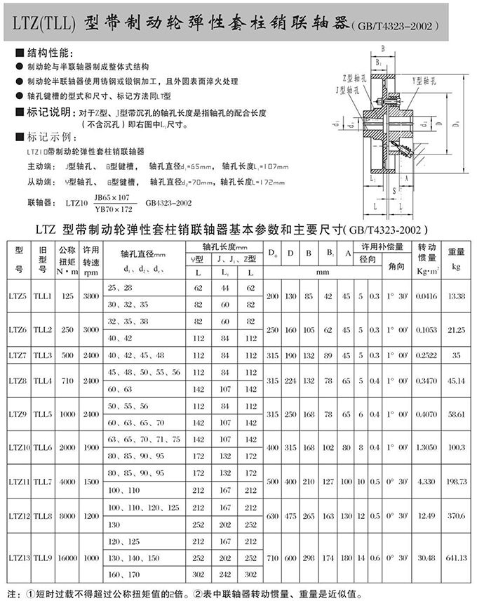 瑞安市寶德隆機械配件有限公司提供LTZ(TLL)型帶制動輪彈性套柱銷聯(lián)軸器具有拆裝方便,快速安裝等特點,廣泛用于連接/固定輪轂孔和零件的軸,例如齒輪,錐齒輪,鏈輪,葉輪,凸輪,皮帶輪和飛輪等軸的聯(lián)結(jié)固定,咨詢電話:18906872378