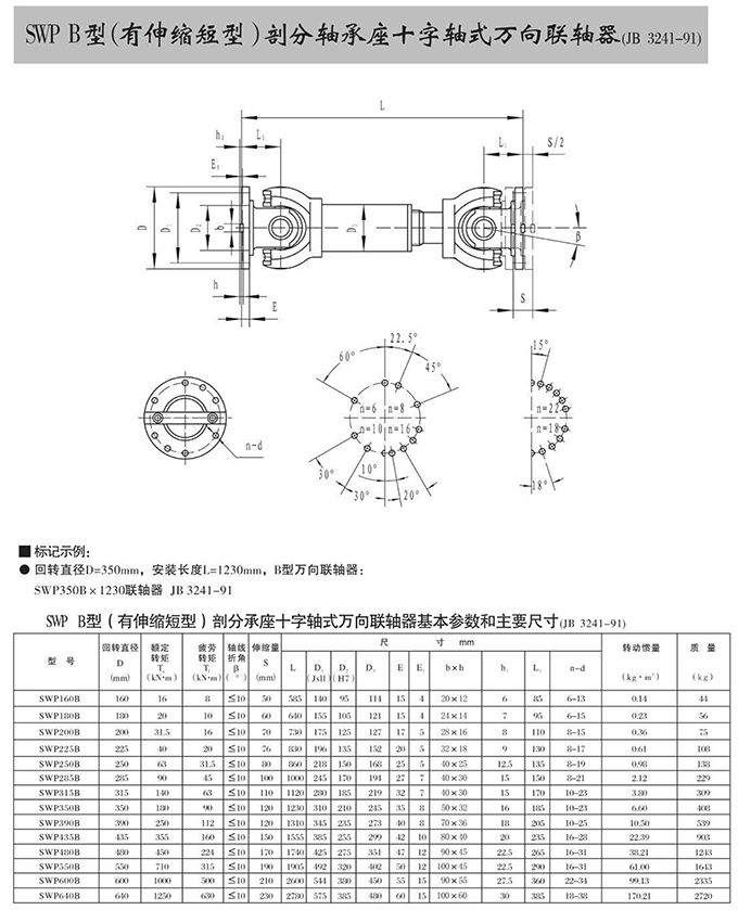 瑞安市寶德隆機(jī)械配件有限公司提供SWP B型(有伸縮短型)部分軸承座十字軸式萬(wàn)向聯(lián)軸器具有拆裝方便,快速安裝等特點(diǎn),廣泛用于連接/固定輪轂孔和零件的軸,例如齒輪,錐齒輪,鏈輪,葉輪,凸輪,皮帶輪和飛輪等軸的聯(lián)結(jié)固定,咨詢(xún)電話(huà):18906872378