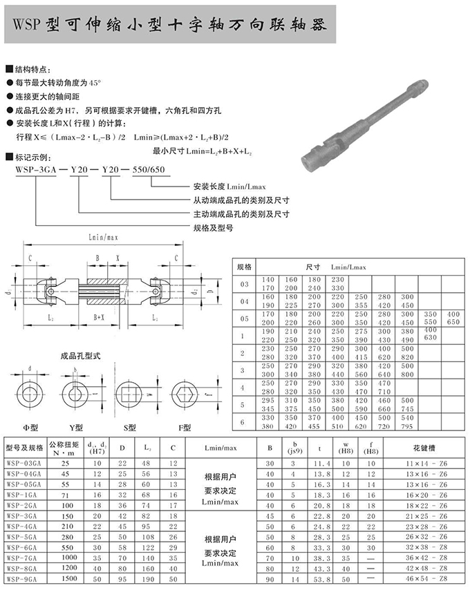 瑞安市寶德隆機(jī)械配件有限公司提供WSP型可伸縮小型十字軸萬向聯(lián)軸器具有拆裝方便,快速安裝等特點(diǎn),廣泛用于連接/固定輪轂孔和零件的軸,例如齒輪,錐齒輪,鏈輪,葉輪,凸輪,皮帶輪和飛輪等軸的聯(lián)結(jié)固定,咨詢電話:18906872378