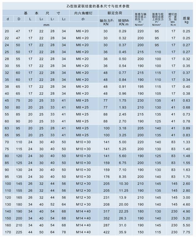 脹套拆卸方便,且具有良好的互換性。由于脹套能把較大配合間隙的軸轂結(jié)合起來,拆卸時將螺栓擰松,即可使被聯(lián)結(jié)件容易拆開。脹套脹緊時,接觸面緊密億貼合不銹蝕,也便于拆開。